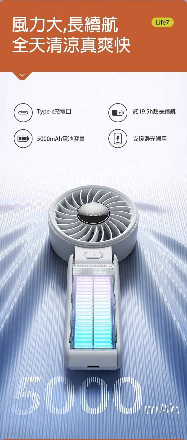 型號:HANDHELD FAN LIFE7 5000mAh