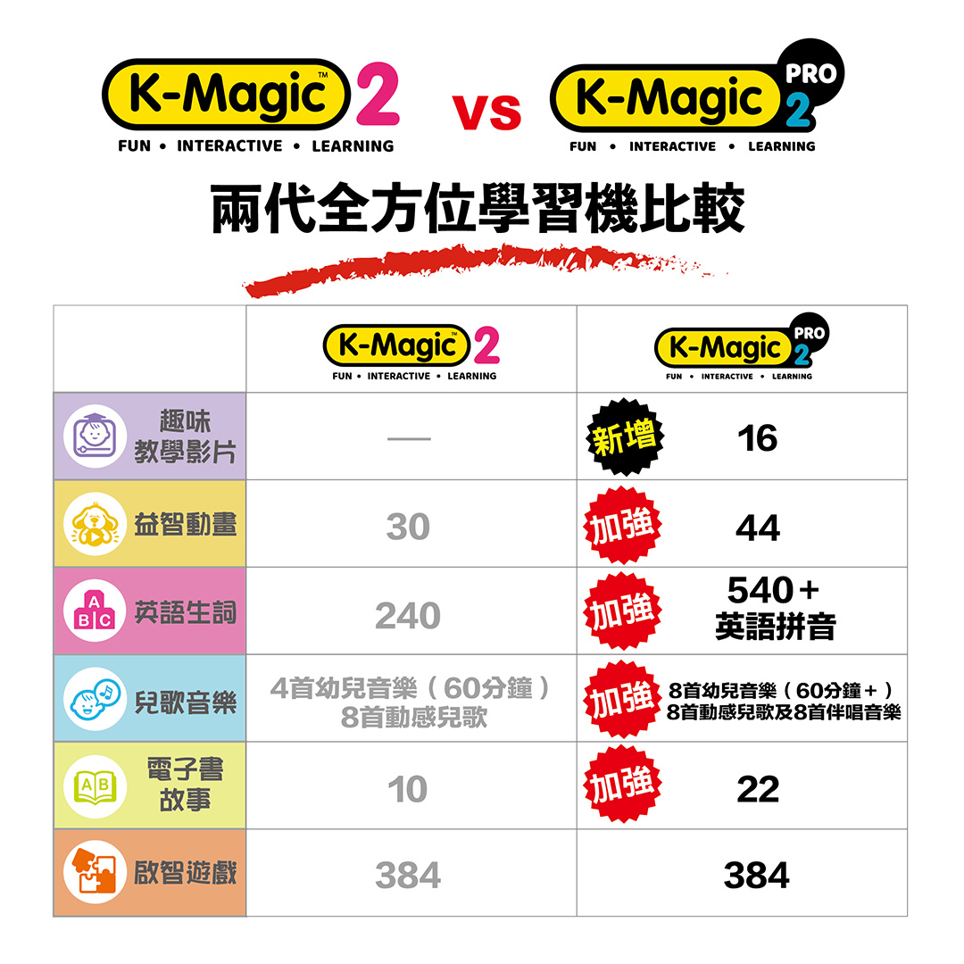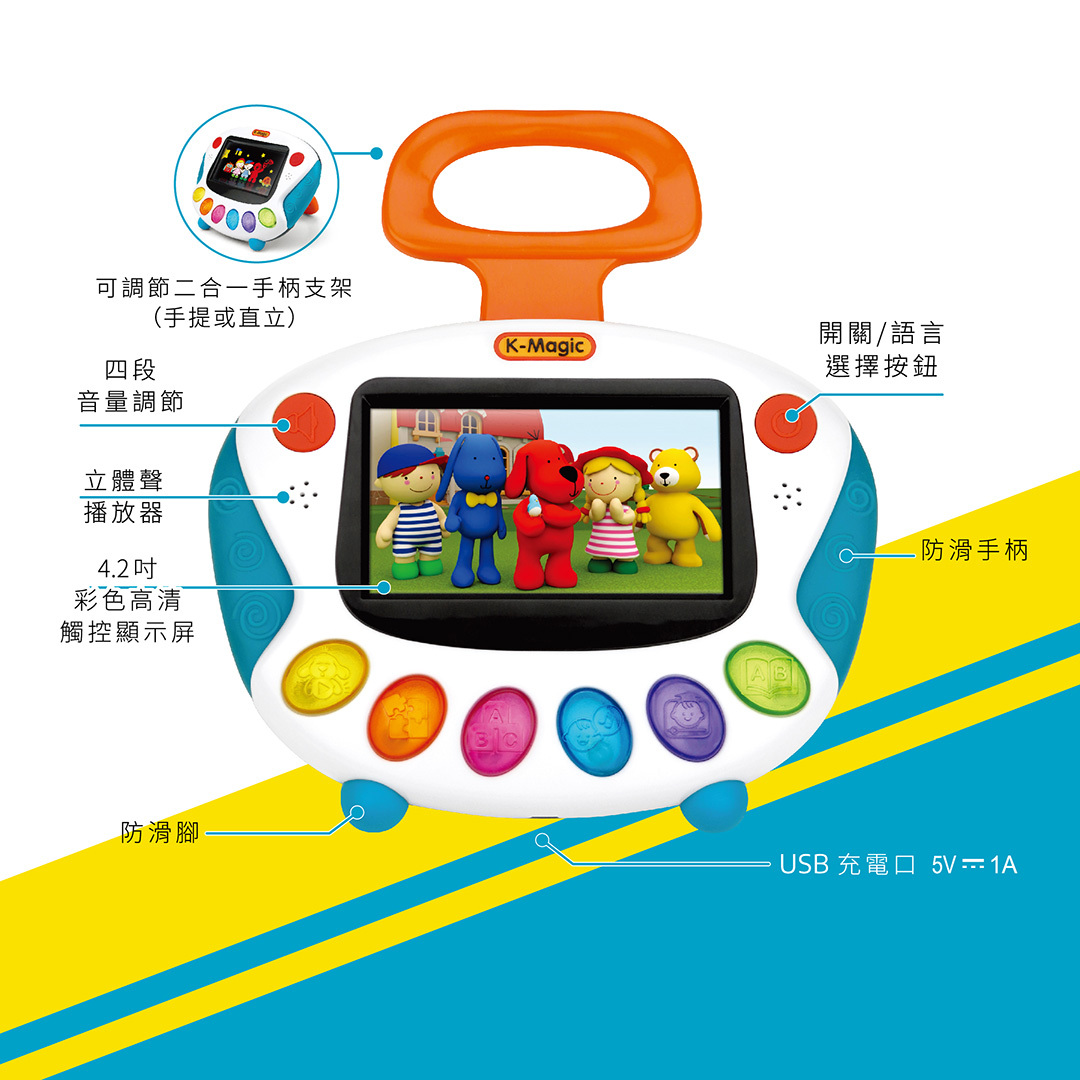 由教育專家設計的『K-Magic 奇智寶盒』全方位學習機 早在2011年面世,十年間暢銷全球,接觸過千萬0-6歲的小朋友,更獲獎無數,蜚聲國際,成為家長信心保證。新一代K-Magic 2 Pro 內容更豐富,更人性化,設計仍然以K’s Kids 「學習三角形」為基礎, 是孩子智能、體能和社交能力的隨身啟蒙老師!